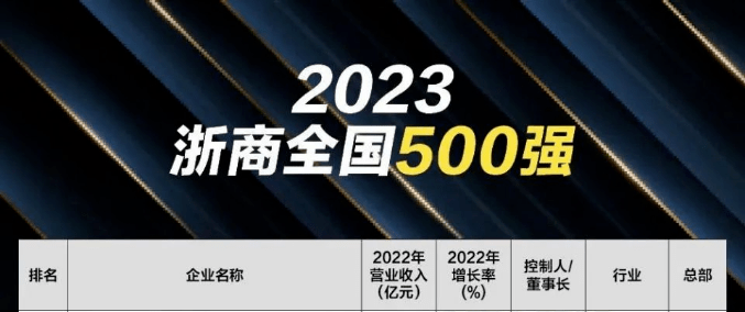 《浙商》杂志2023年10月发布“2023浙商全国500强”榜单。 榜单上,27家浙商企业组建的千亿军团正式登场,这是以往从未有过的规模。登榜的500家企业合计创造了12.41万亿元的总营收。