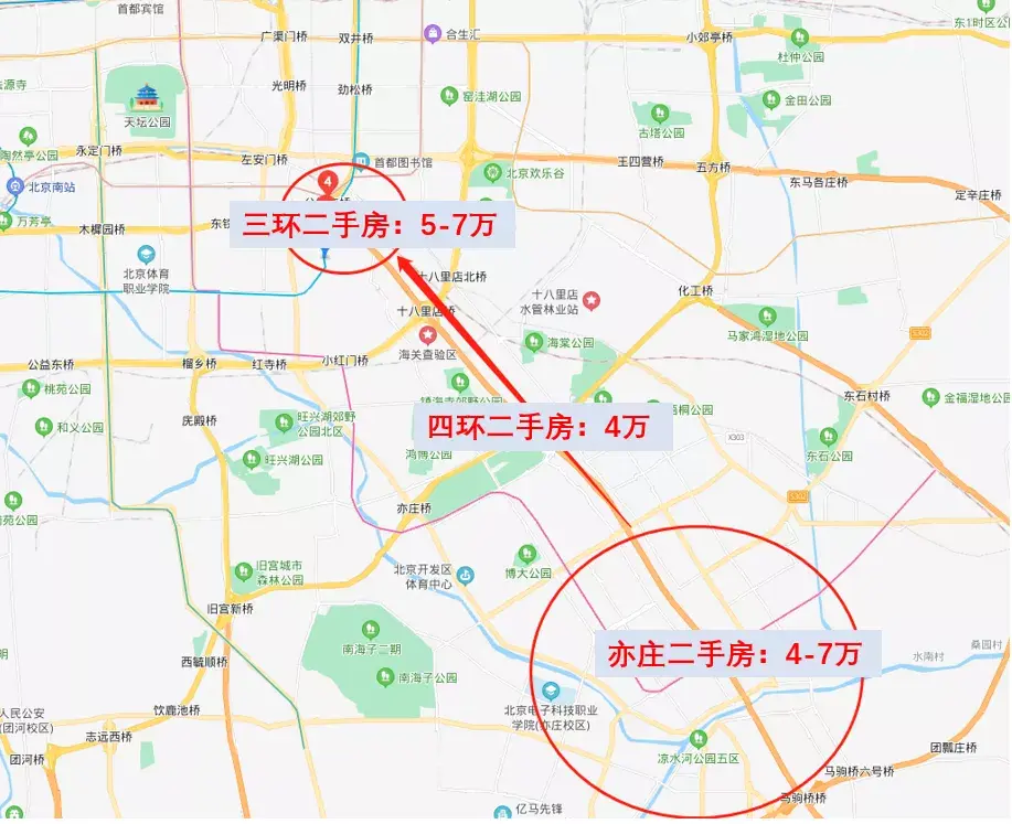 更神奇的是,东南三环和亦庄,明明地理上是前者更接近市中心,但没有价值上的差距。