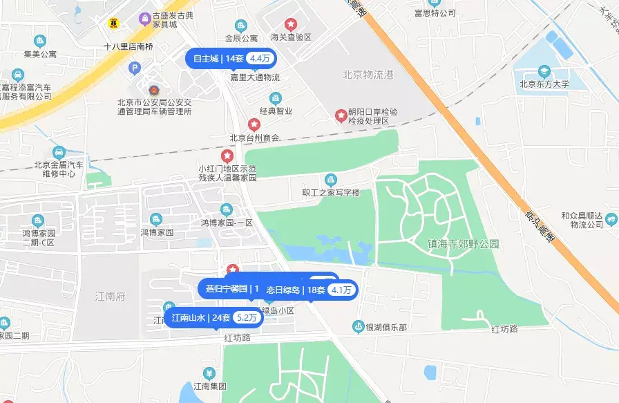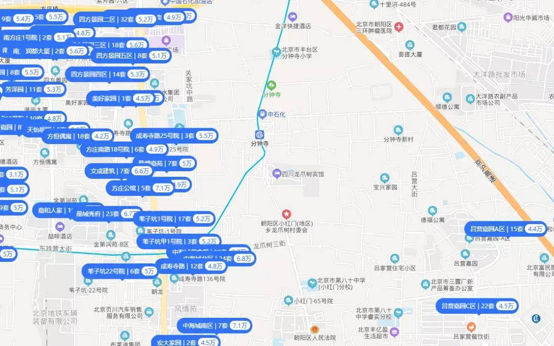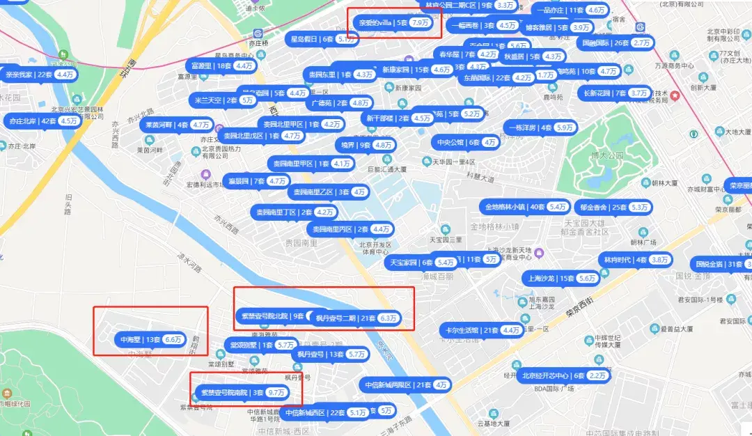 到了东南四环一带,整体住宅开发不多,均价4万+。