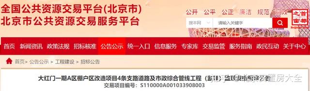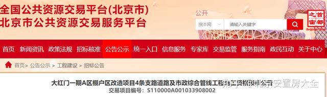 近日,重庆市国有土地产权交易平台就发布了《马驹桥一期A区拆迁改造飞虎大道雨自来水管雨污水管网工程》的招标信息!