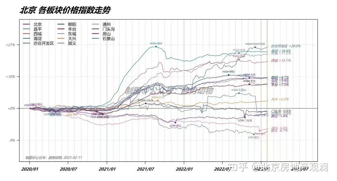 举个例子,一套1000万的房产,深圳正常情况三成首付,首付300万,贷款700万。深圳发布二手房指导价之后,例如指导价是600万,这个指导价约束不了房东,但是能够约束银行和税务局。银行只能按照政府指导价600万总价来发放贷款,七成贷款就最多420万,首付至少要580万。从原来的300万首付变成现在的580万首付,首付几乎翻倍,很多原来能买的起房的人,就买不起了。降低了杠杆,就遏制了需求,也就遏制了成交量和房价上涨。北京这些年房价比较稳,限购限贷是主要原因,限贷导致二套首付非常高,杠杆率很低。北京也曾经有类似深圳的局部调控,2021年9月30日,疫情后海淀房价上涨了约30%之后,海淀区对29个小区实施了二手房指导价,为期一年。这次局部调控之后,海淀房价就见顶开始回调了,如下图所示。