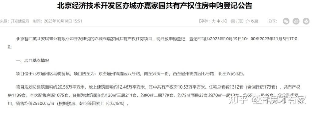 亦城亦嘉的申请公告正式发布了:2023年10月19日10:00起开始,面向仍然主要面向亦庄人群申请,不过这一次通州区台湖镇、马驹桥镇,大兴区瀛海镇、旧宫镇、亦庄镇、荣华街道、博兴街道户籍等家庭有机会,范围有所扩大。