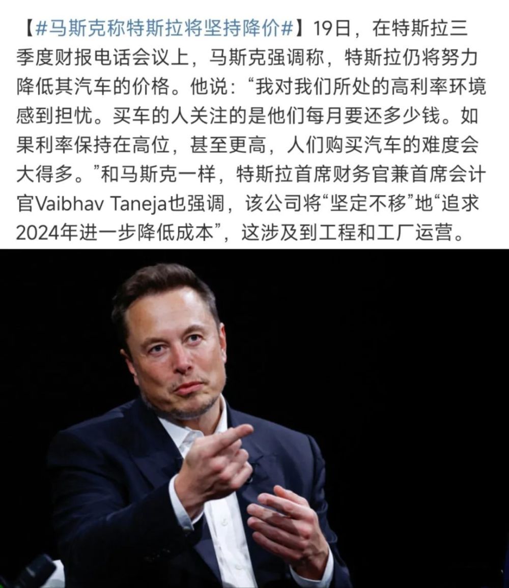 @马斯克选择降价的原因或许是牺牲利润换取市场份额。特斯拉旗下的所有车型都经历多次不同程度的降价,通过牺牲利润换取市占率的思路,让特斯拉在新能源领域站稳排头兵的地位。