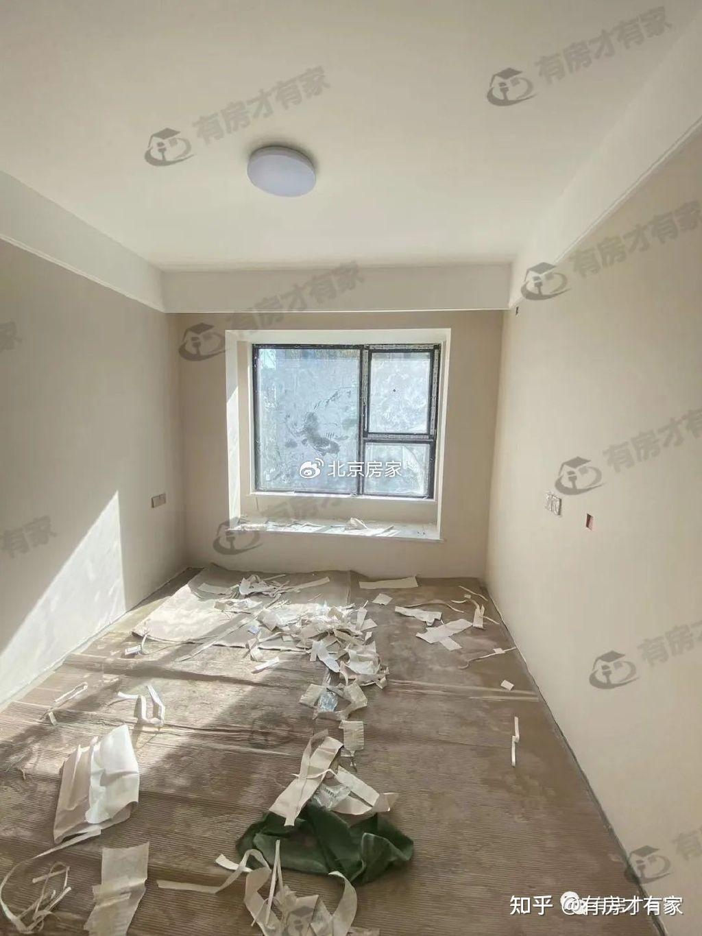 各个卧室房间墙壁和吊顶已完工,地面工作还未清理