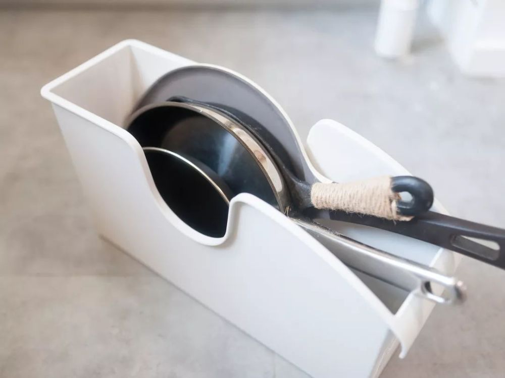 有时候家里的厨具总是找不到合适的地方放,最后也只能是随便堆放了,那你就需要这样一款立式收纳盒了。立式设计能实现橱柜的最有效使用,避免了空间的浪费;它还自带滚轮,方便拿取。
