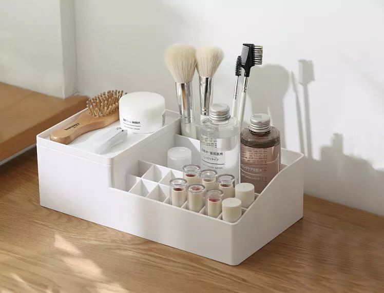 一般女生都会有各种化妆品,如果随意摆放,找的时候很不方便,而且也会让房间显得比较乱,这款“分格化”的收纳盒就能满足你的化妆品收纳需求,有多个小格收纳,再也不用担心化妆品丢失了。