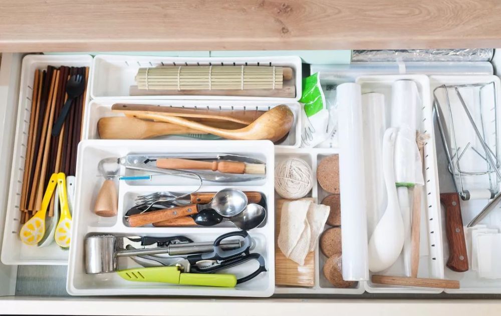 其实只需要买几个餐具收纳盒就可以了。可以根据你的餐具分类放置,既保证餐具的卫生,又不用担心厨房抽屉显得乱糟糟的。