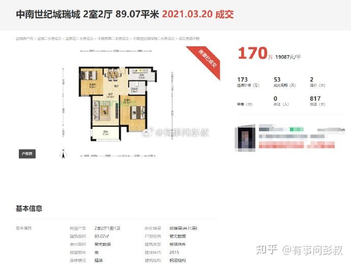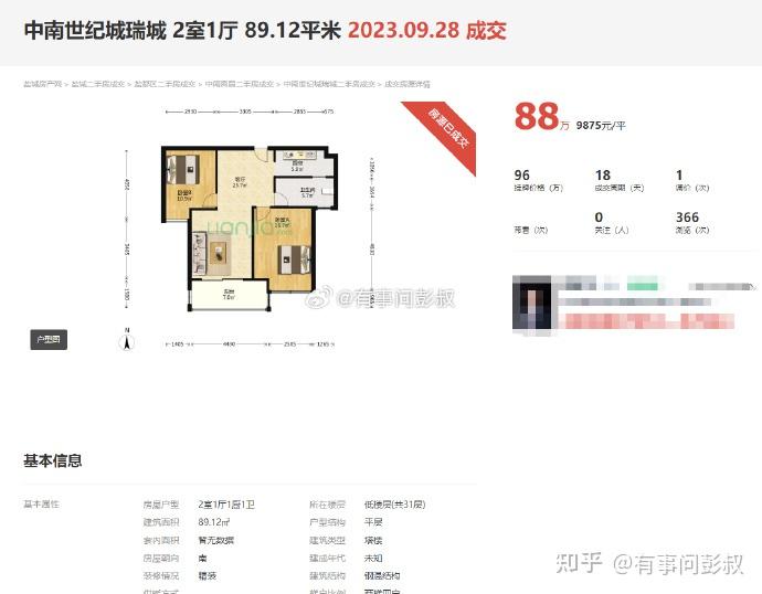 这是盐城中南的二手房,大家可以看到,在2021年巅峰的时候,盐城这套89平的房子是170万,结果现在,已经是88万了,再差3万,就跌了50%,刚好腰斩了。