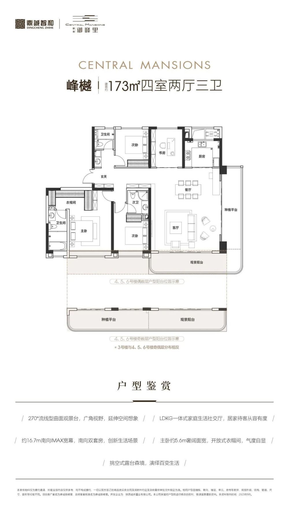建面约173㎡【峰樾】户型(偶数层):“环幕光厅”幻化露台之美。