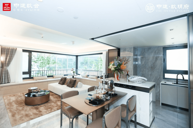 在产品规划上,中建·玖玥府不断优化窗墙比与空间布局,用大尺度观景窗、玄关、套房、社交客厅等空间功能迭新生活方式;营造社交、聚会、娱乐等不同生活场景下的舒居港湾。