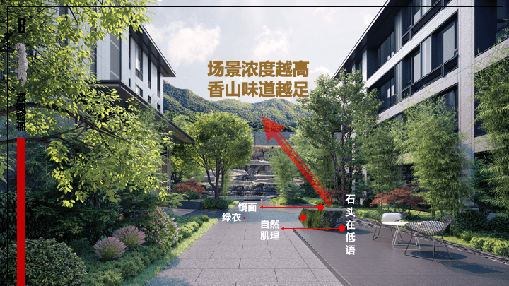 完全融入香山,印香山其实做得更多。我们来看下这张效果图里边的石头。