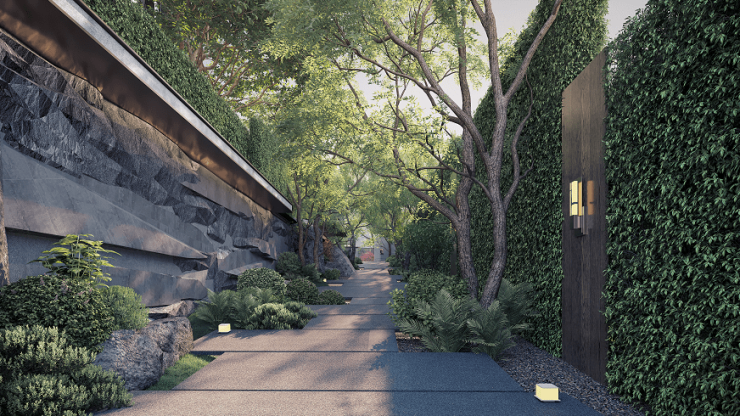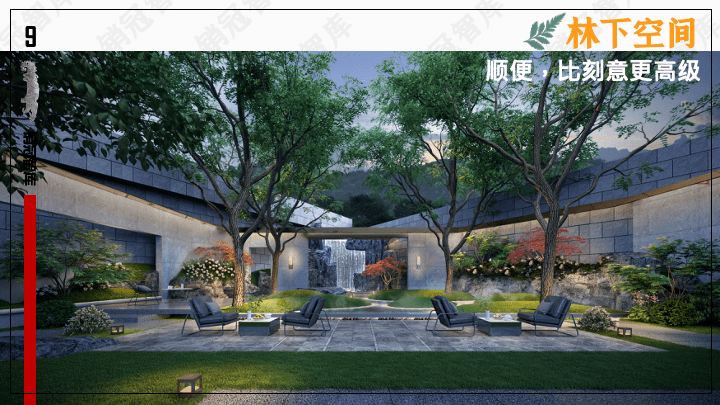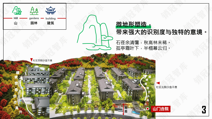 你再仔细看「微地形」的营造,设计师打造了数个曲径通幽的园林小景,有识别度更有独特的意境。