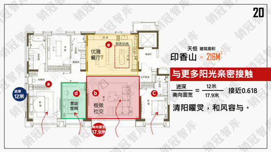 最夸张的数据是,印香山主力户型216㎡平墅,南向面宽达到了17.9米!