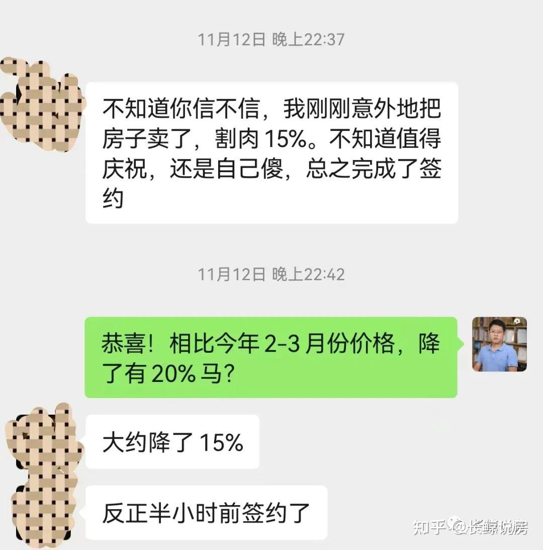 一位是11月12日,已经深夜了,突然发来一条消息,说房子已经签约了。按照粉丝自己的说法:意外的把房子卖了,割肉15%。