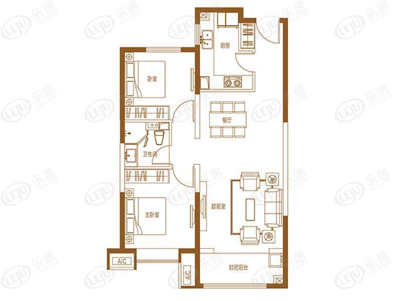 户型直接影响居住体验,较好的采光、通风、较短的归家活动动线,动静分区,都将提升居家生活体验。如下图A户型来那个室两厅一卫-95㎡