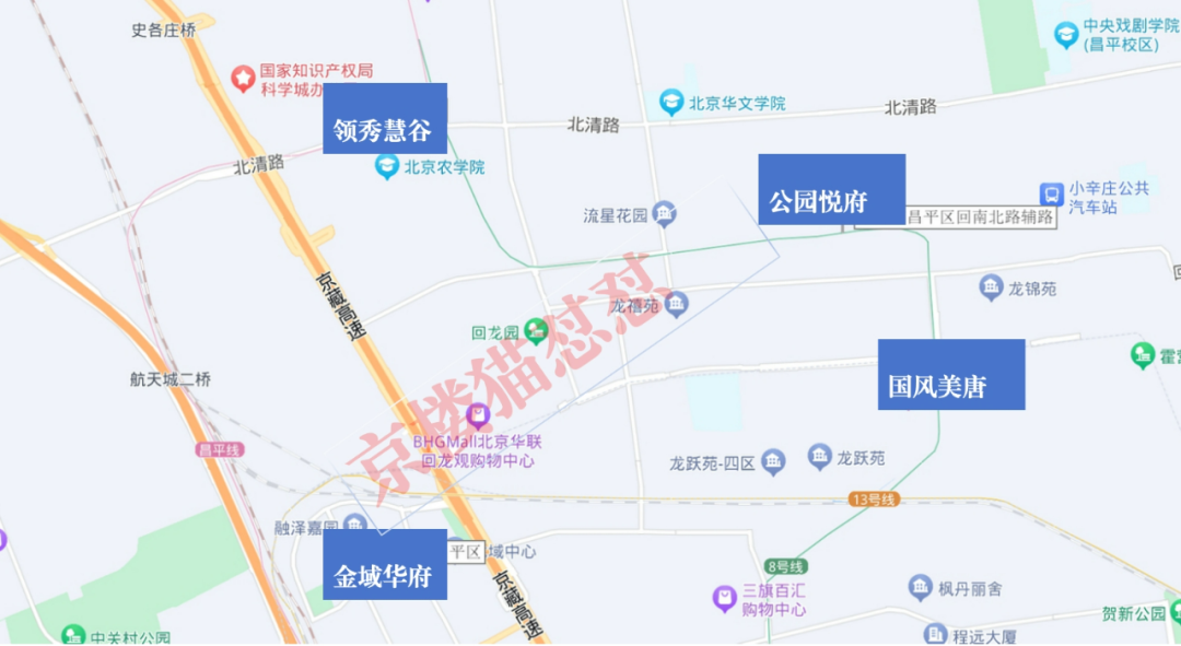 昌平新城——也就是南邵板块,主要新盘有建发观堂府,很快就会开盘接下来猫子开始提问了。这四个板块,大家能不能找出一个最另类的,和其他三个板块气质上不太一样的出来?好,现在我要揭晓答案了——