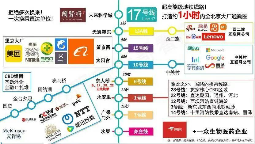 为什么他另类呢。你看其他三个板块都是昌平以西,地理位置更靠近海淀。但他是昌平以东,地理位置更靠近朝阳。东二旗板块本质就是身在昌平,心在朝阳。北京国贤府曾经做过一张宣传图,说明了区域关系。他最依赖的17号线,主要输出地铁线路是可以去望京的15号线、去国贸的10号线、6号线,以及1号线,还有亦庄。望京和国贸工作的人群,往往可能会考虑国贤府。但在海淀工作的人群,因为其他板块去海淀更方便,所以不会优先考虑国贤府。