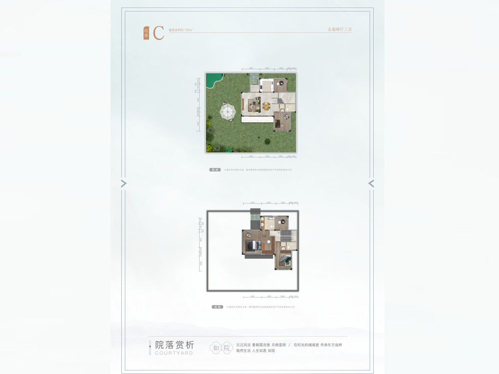 春风桃源主推户型建面约95~222㎡,房源特点为C户型契合整体格局,静区私密布局,舒适度高,动区开阔大气,围合而成徽派居所。,南北。
