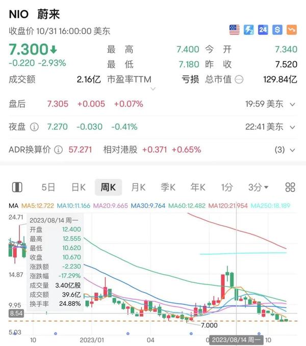 金融投资领域,我的经典案例非常多,近的就说蔚来,蔚来股价已经大跌至7.3美元,逼近创历史新低,想起了8月14日和一位朋友聊到蔚来股票投资,当时股价约13美元。