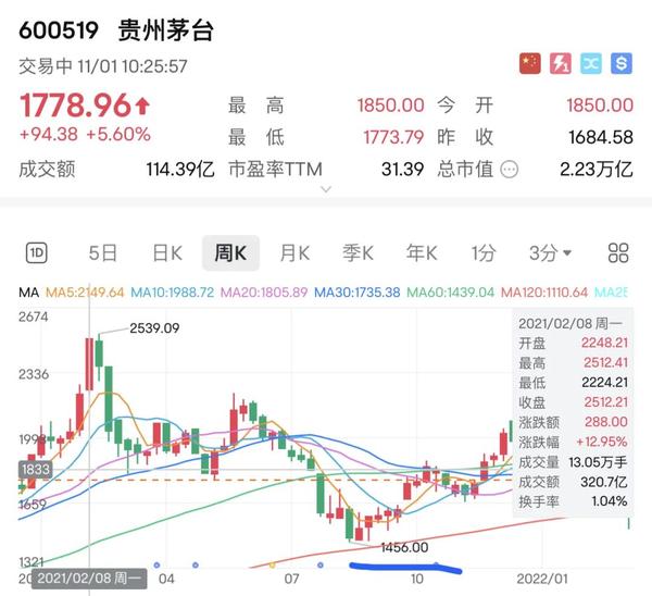 21年2月(春节前夕)我在公众号正式分享过一篇文章《茅台会在什么情况下崩盘?》。这篇文章一经发布,茅台就从每股2500+元拐头向下。