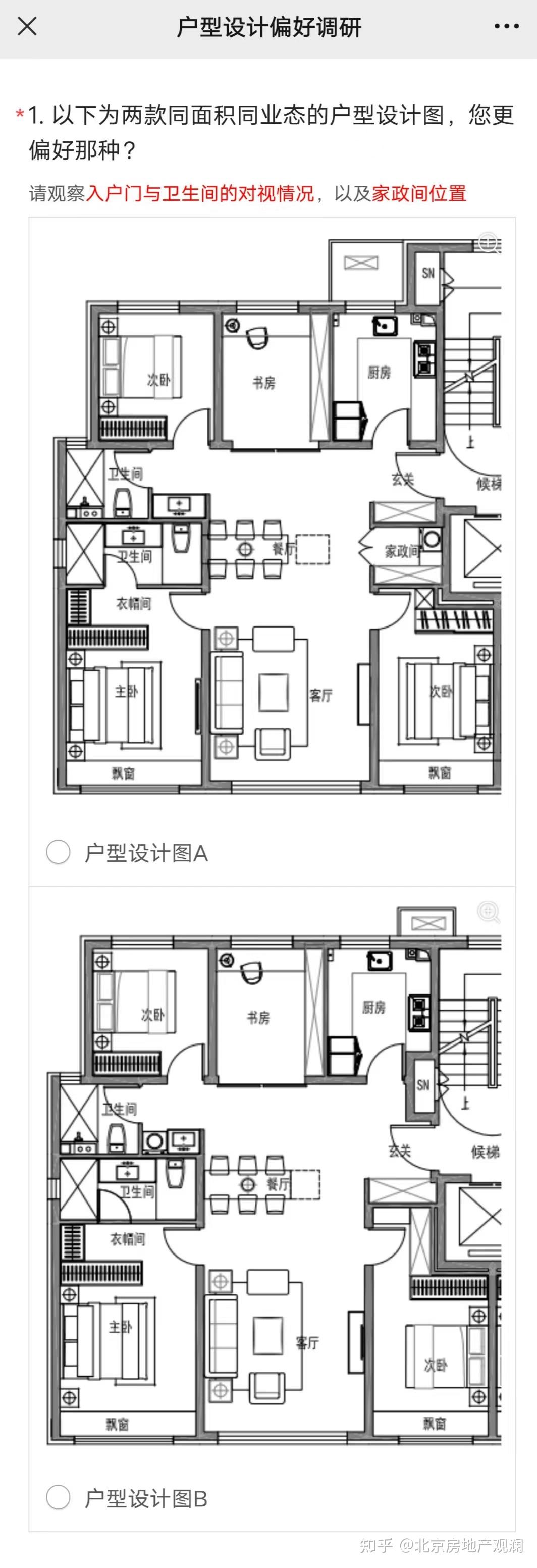 我们来看看两个月之前做的用户调研,很可能就是这次的户型产品。