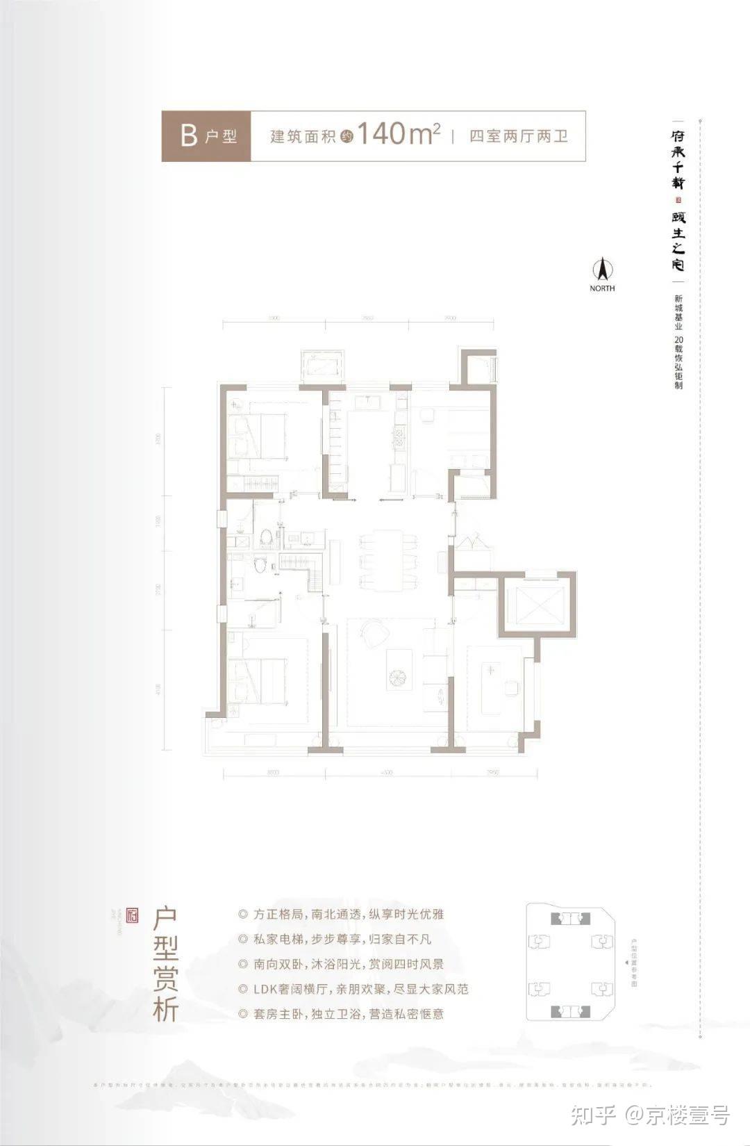 136平四室两厅两卫,南北通透,四叶草户型;宽厅面宽4.3米,主卧面宽3.5米,LDK一体设计,总价大概在843万。