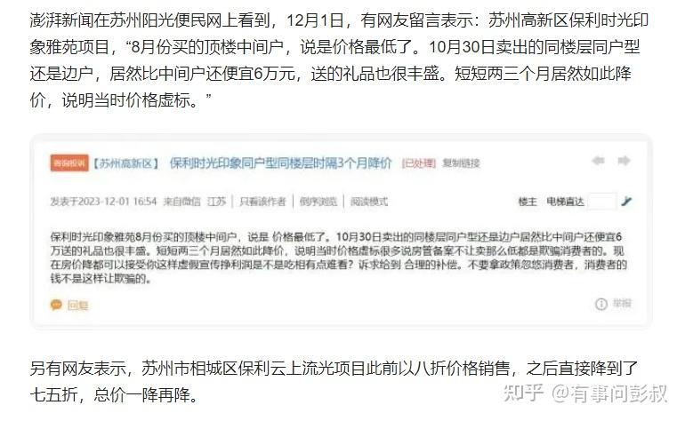 再看下面的这个,苏州相城保利云上流光的房子,之前是8折,现在是75折,彭叔都不说这个真实性是多少。