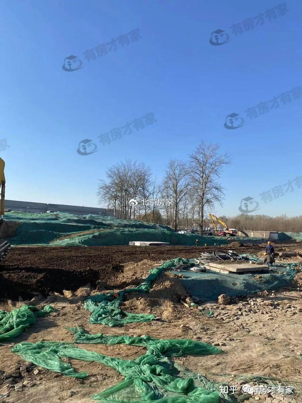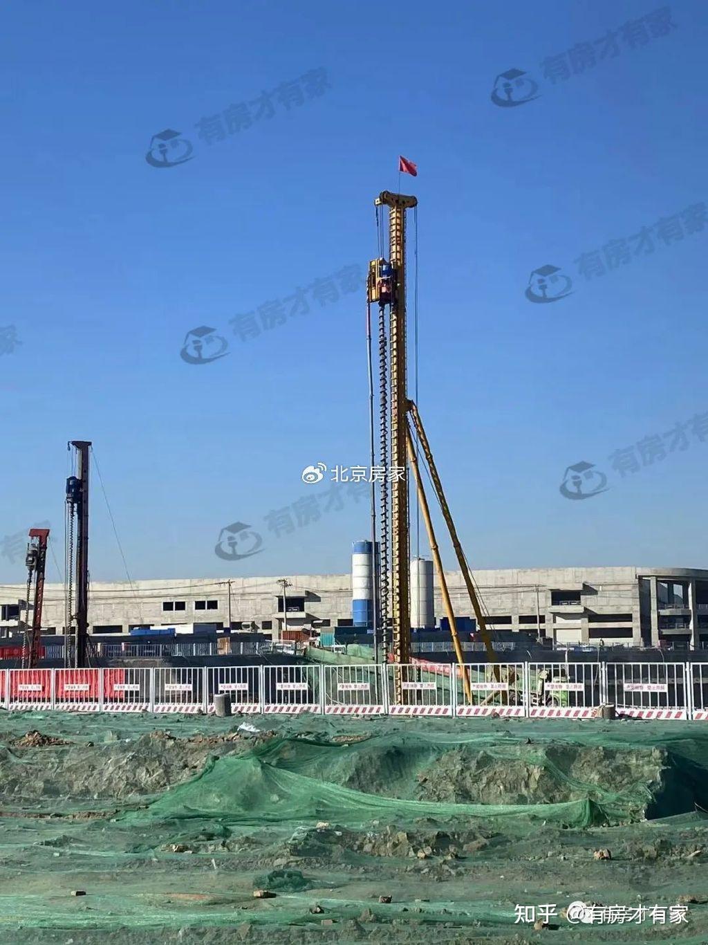 目前桩基设备在场,地面大面积覆盖着绿网,局部位置开始施工了。
