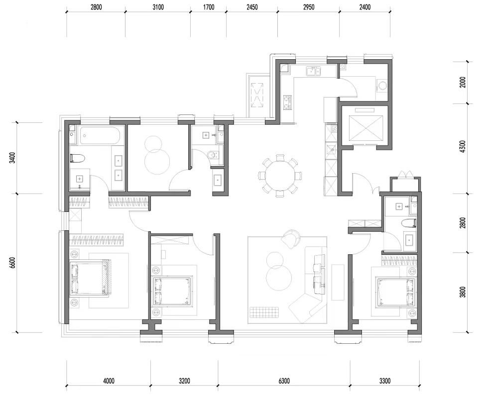 这其中,200m²的四室两厅三卫的格局,做到了四面宽朝南,且整个南向面宽达到了16.8米,这才能称得上是标准的大平层产品应有的面宽尺度。此外,独立电梯厅入户、LDK一体化的经典格局以及中西厨联动的景观餐厅、独立家政间等等,在这里,都成为了望京国誉府的标配。