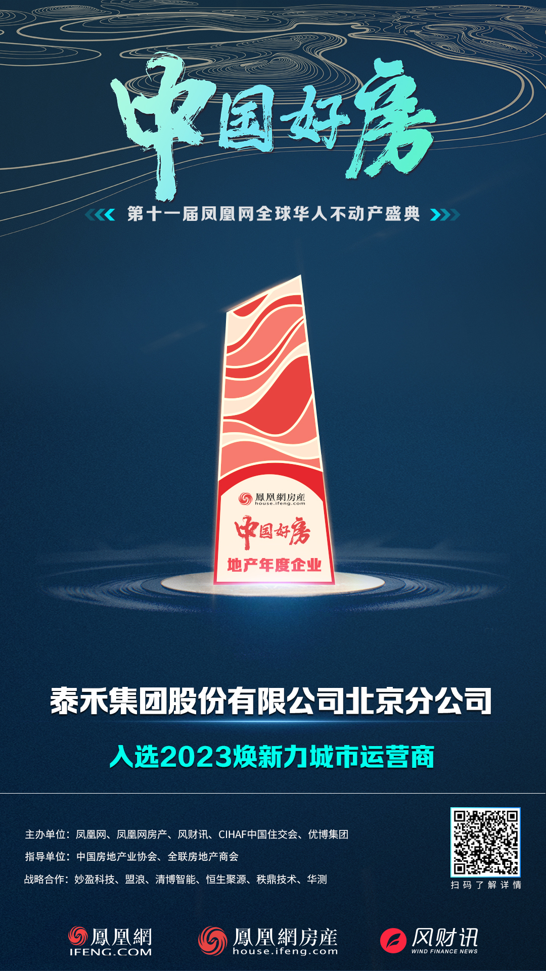在评选活动中,泰禾集团北京分公司荣获2023中国好房·年度企业“焕新力城市运营商”奖。