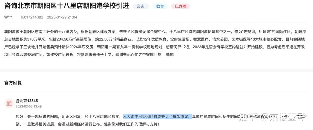 二是教育配套落地,在2023年初,人大附与区教委签订框架协议将落址十八里店。