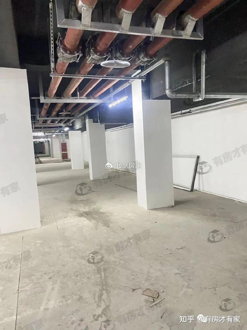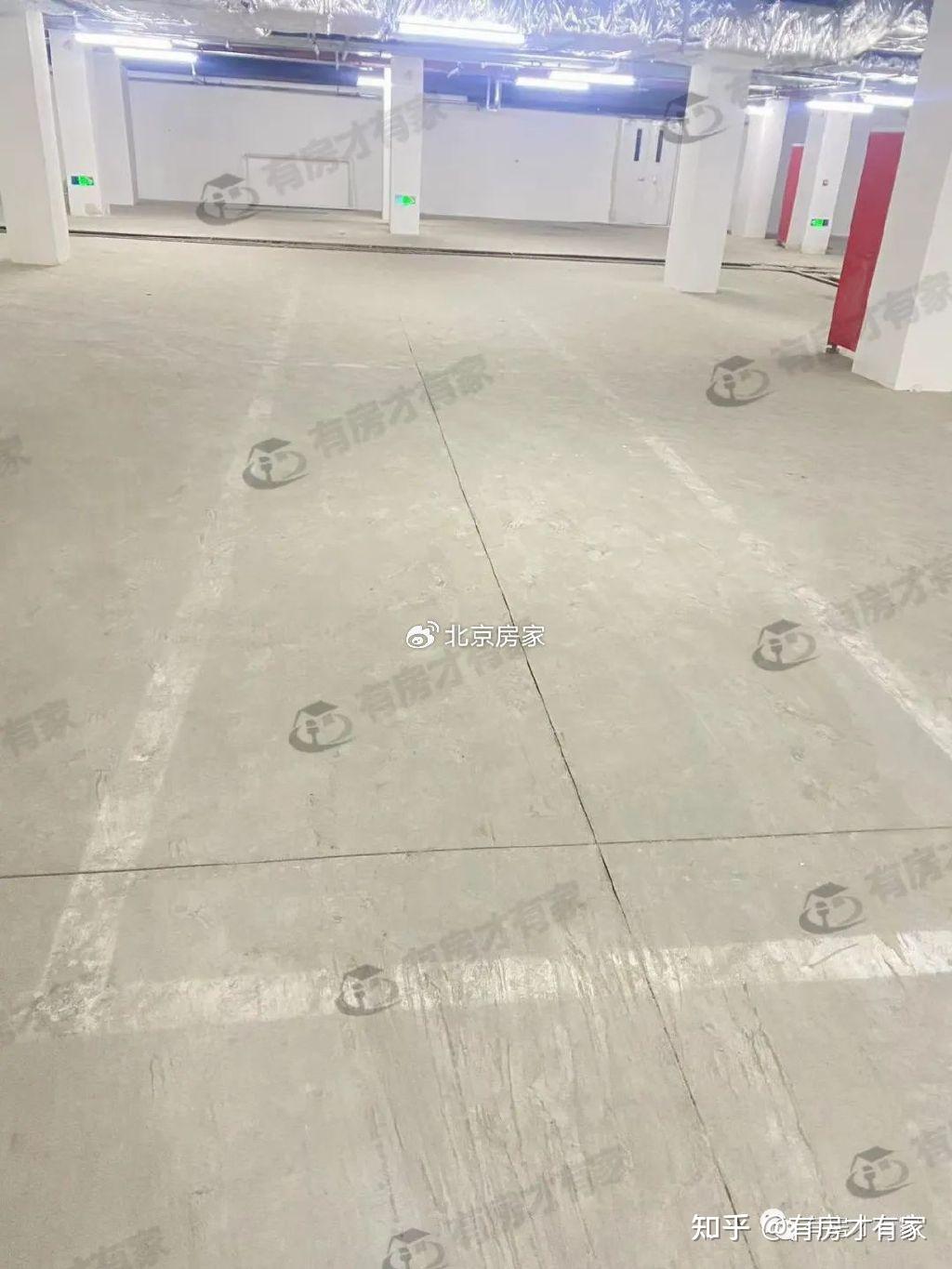 局部公共区域施工了,地下车库地面目前是水泥状态,车位线还没有画好。
