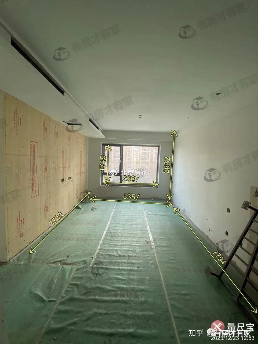 室内各个房间的实测数据已经标注出来了,目前室内还是毛坯状态,地面铺的保护膜,卫生间做了防水,邻居们可以进行一下参考。