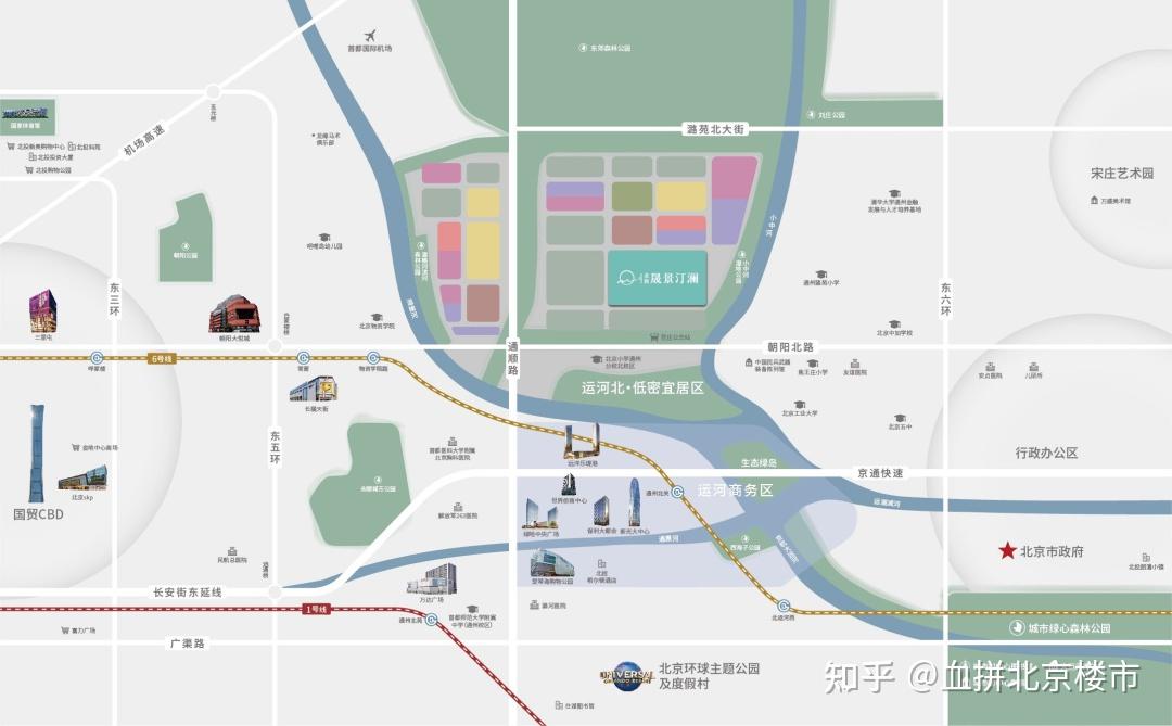 北投晟景汀澜位于五环至东六环之间,门口便是朝阳北路,30分钟内覆盖国贸CBD与通州政务区。
