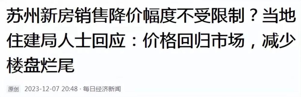 而随着2023年楼市一整年的低迷和调整,房价限跌已经不符合当下楼市走势,毕竟很多城市和地区二手房价格已经越来越低,如果新房售价高于二手房很多,开发商将很难卖卖房子。因此,随着楼市的调整,这件事也出现了转机,住建局“动真格”了。根据报道显示,苏州多个区房企降价销售,得到住建部门的放行,有8折的,7.5折的,甚至有6.2折的。另外,住建局还明确表示,只要不允许高于备案价销售的,对于低于备案价的幅度暂不做限制。很明显,目前政策方面已经允许开发商突破备案价卖房了,并且对降价幅度不做限制,这意味着只要开发商愿意,他们降价多少都没人管。