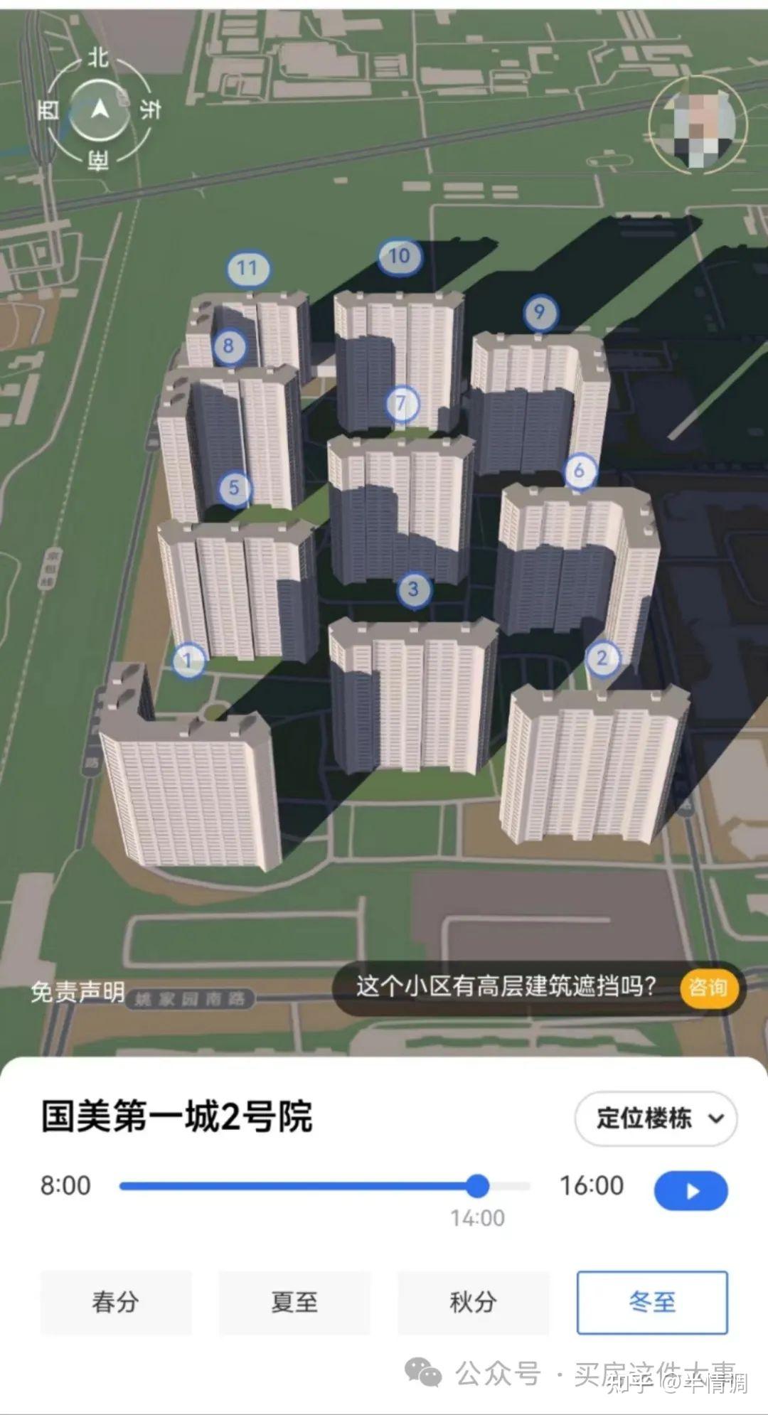 点进去可以看到整个小区所有楼栋的日照模拟图。