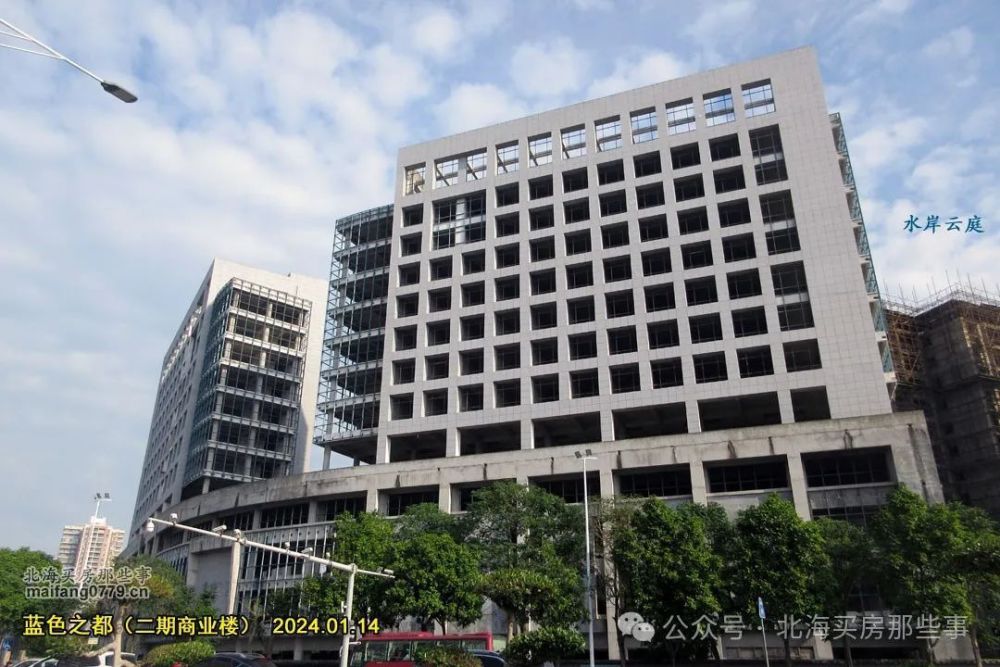 蓝色之都,位于金海岸大道交云南路东北角。它的一期是住宅,已建成交付。二期是商业楼,烂尾中。2015年12月取得预售证,推出商铺 120间。