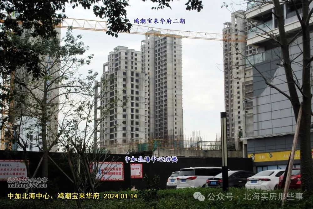 中加北海中心(原“融创北海中心”),位于西南大道交北京路东南角。1-5楼已经开建,其中3#楼刚建出地面,烂尾中(但未申领预售证、未售)。