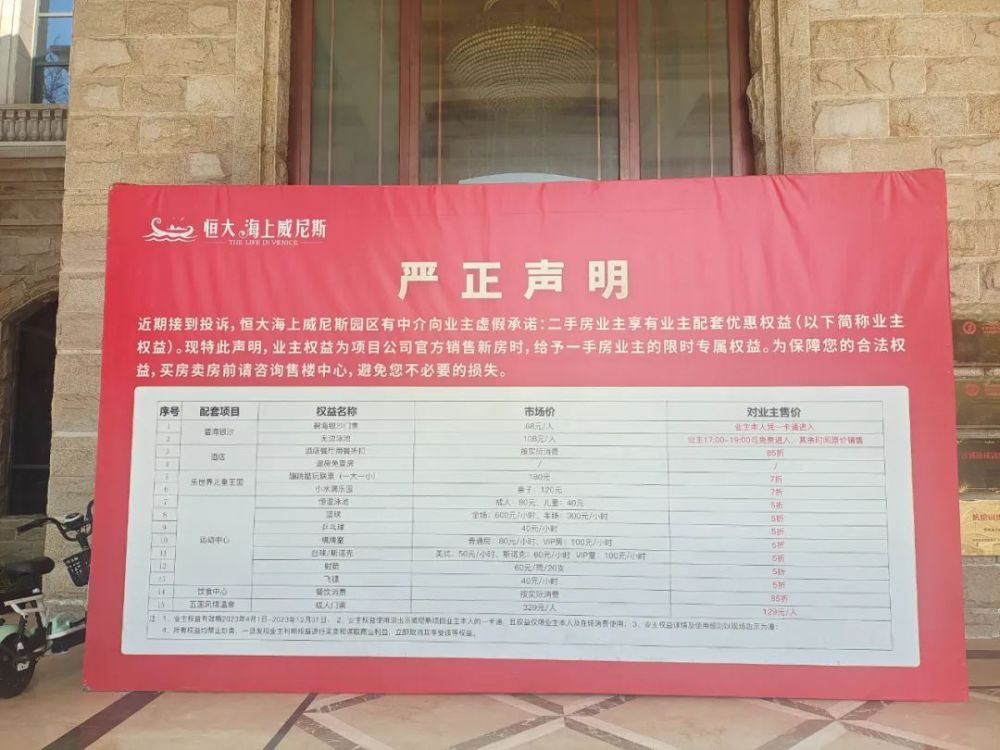 现在,就连销售中心的大门口,都放着恒大海上威尼斯文旅产品的价目表