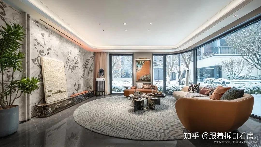 固然,元玺把建筑做成了另一件艺术品:270°观景舱客厅——站在客厅,室内空间就像航行在城市宇宙里的飞船,可以舒适地坐在窗前,静静享受眼前的郁郁葱葱+流光溢彩。