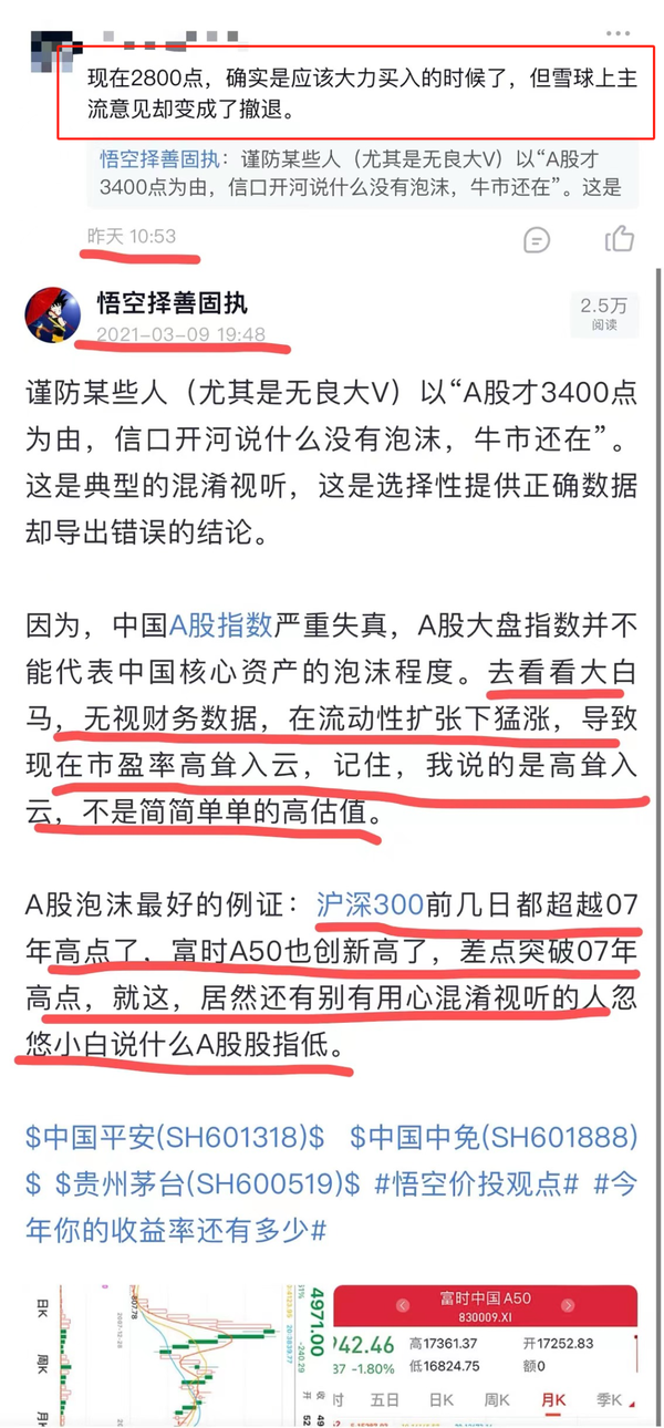 因为21年初我论证股市泡沫的论据和逻辑在此刻都180度逆转,现在的股市肯定不能言泡沫大了。