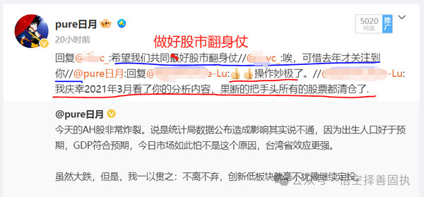 稍早前,我也在微博收到过一个留言,如下图所示,这位朋友感谢我21年初的分析帮助其股票高位变现。
