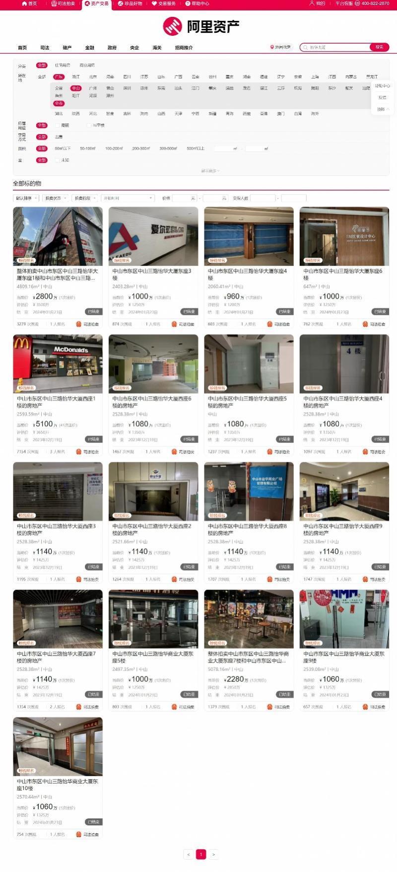南都记者在阿里资产网站搜索“怡华大厦”,显示中山区域内的全部标的物共17个,分别于2023年12月19日和2024年1月23日成功竞拍,标的物信息显示的权利人为广东益华集团投资有限公司等。