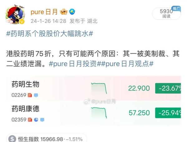 周五原本大盘还算可以,但是中午有消息爆料美股欲假借国家安全名义制裁“药明系”,导致中国医药医疗板块崩溃,港股“药明系”股价直接打了75折。