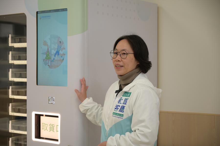 香港九龙乐善堂总干事刘爱诗介绍“社区客厅”的设施(1月11日摄)。新华社记者 谭佳铭 摄