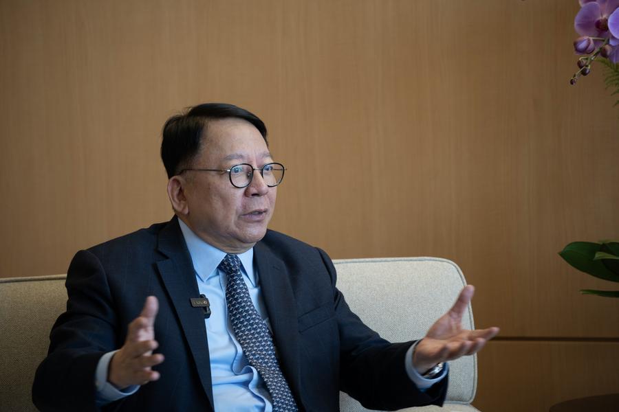 香港特区政府政务司司长陈国基接受新华社记者的专访(1月16日摄)。新华社记者 龙镜伊 摄