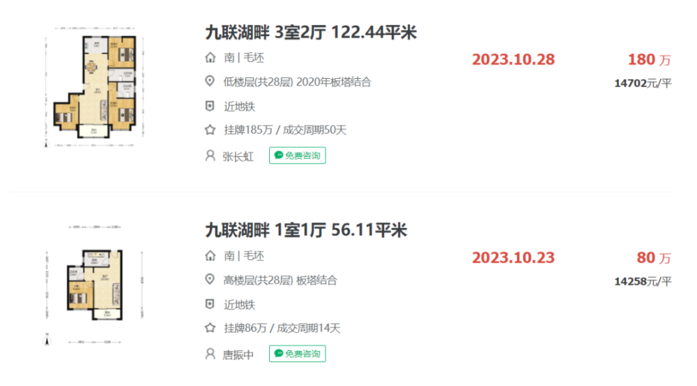 前者是回迁房,成交价格基本跌破新低,前段时间该小区南区的一套92平三房,成交价仅8944元/㎡。