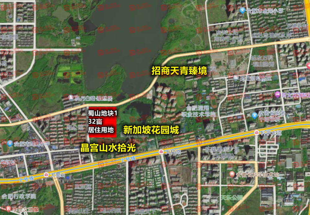 蜀山区地块位于晶宫山水拾光项目正北侧,地块容积率1.2,面积32亩,限高24米。