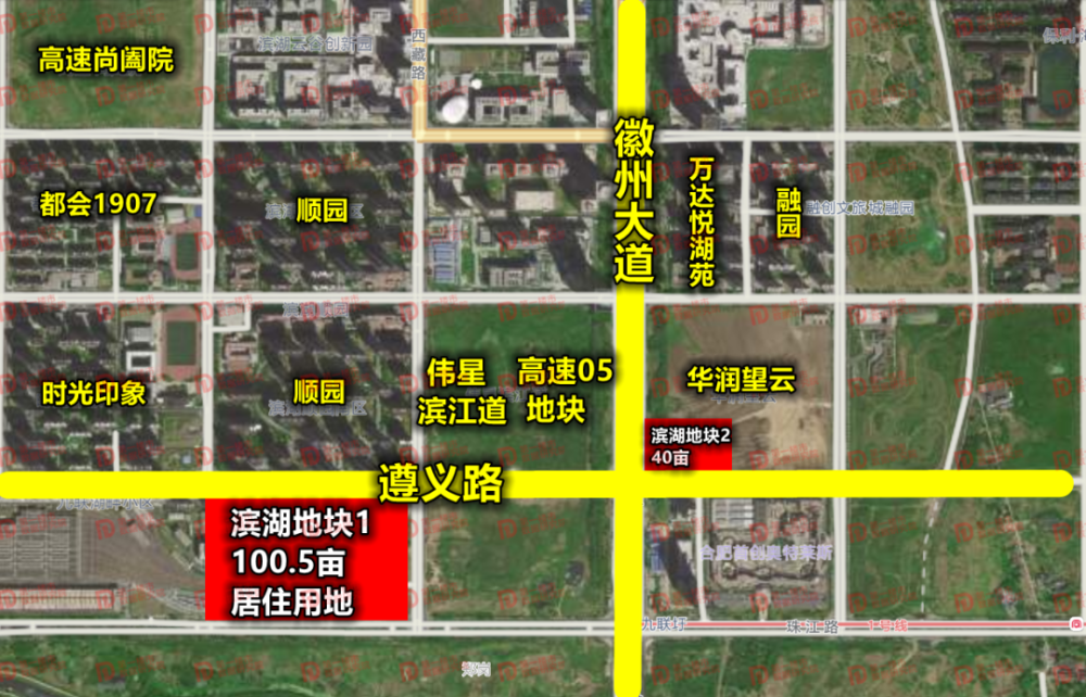 第2宗地块位于徽州大道与遵义路交口东北角,也就是望云西地块正南侧的小地块。该地块占地约40亩,容积率1.8,西侧为之前高速拍得的高速05地块。