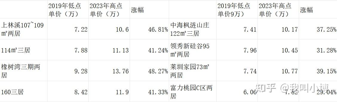 挑选了几个热门小区的数据,展示如下。其他小区,大部分也能和热门持平或略低一点。
